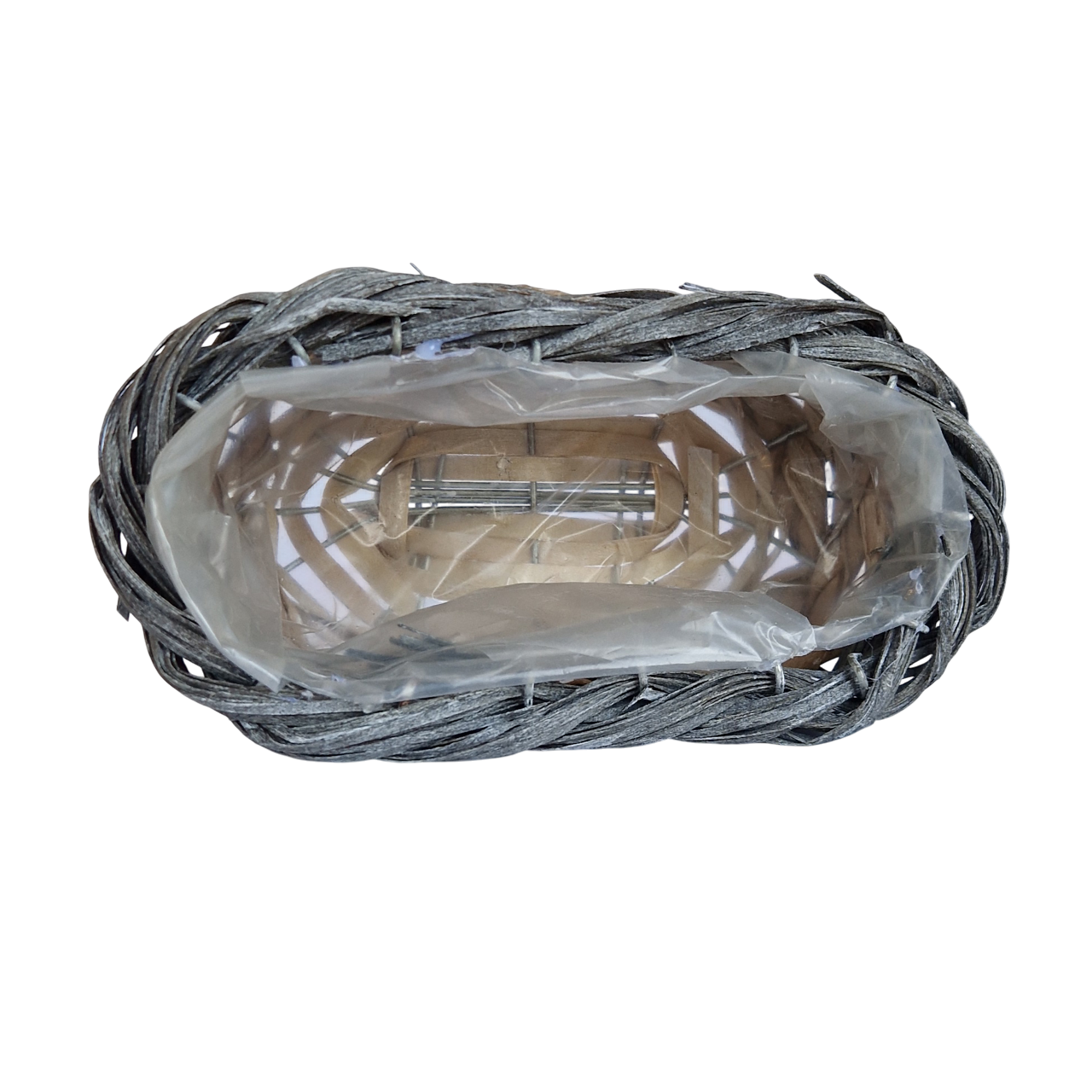 Osłonka owalna 21 x 11 cm wykonana z rattanu i trawy morskiej wewnątrz zabezpieczona folią