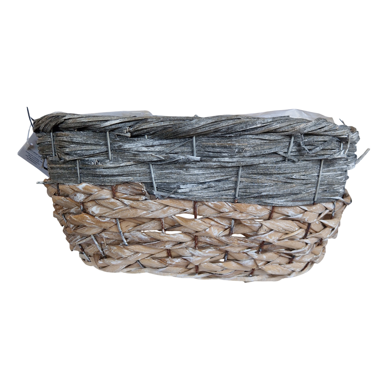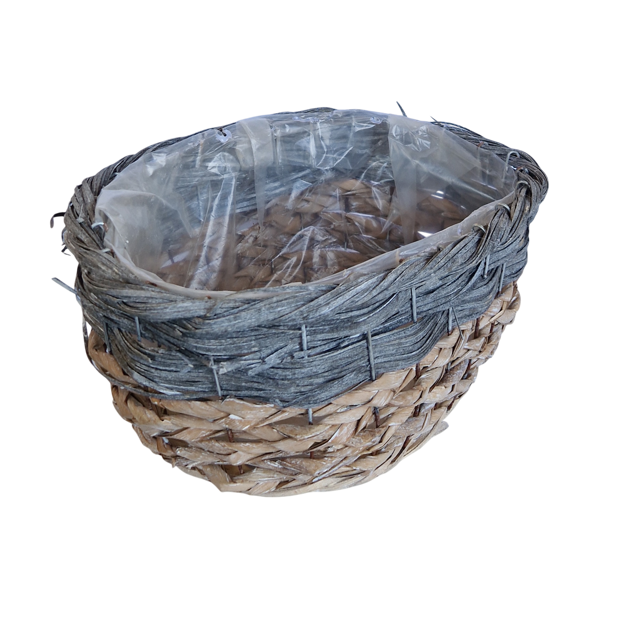 Osłonka owalna 33 x 26 cm wykonana z rattanu i trawy morskiej wewnątrz zabezpieczona folią